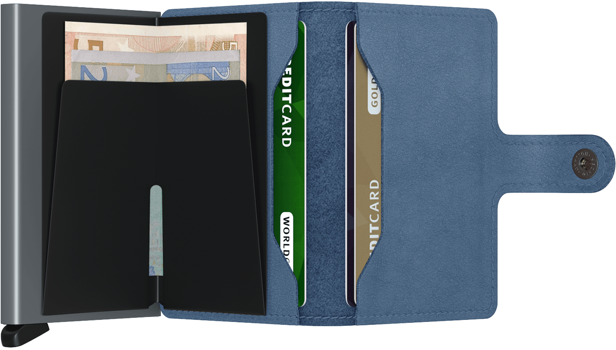 Das Miniwallet ist klein und doch überraschend groß, es kombiniert das Beste aus beiden Welten. Während sich auf der einen Seite Banknoten, Quittungen und Karten, leicht verstauen lassen, können Sie auf der anderen Seite mit dem Aluminium Cardprotector Ihre Karten mit einer einfachen Bewegung herausschieben. Außerdem sind Ihre Karten vor Biegen, Brechen und vor unerwünschter drahtloser Kommunikation geschützt.
