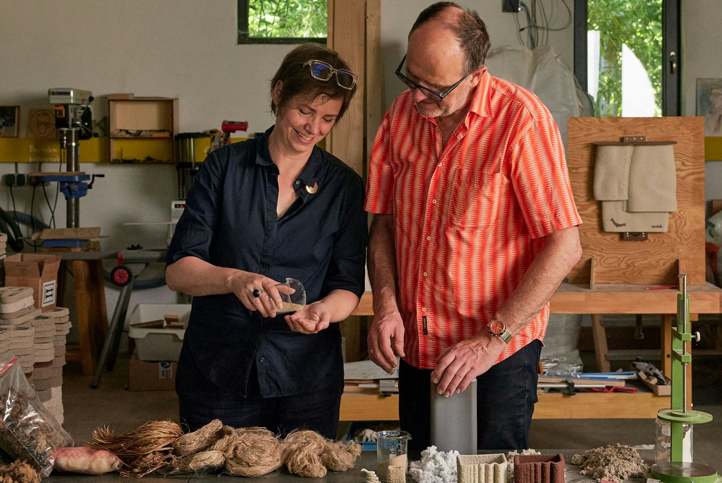 Huub: We like to design differently, with nature as a shareholder. Besides material and product development, education and knowledge sharing are important means of having an impact. Therefore, we regularly organise workshops and master classes for students and companies, together with schools and research organisations. We do this in our workshop in Arnhem, where we introduce everyone hands-on to the possibilities of biobased and circular building, often leading to new product ideas.