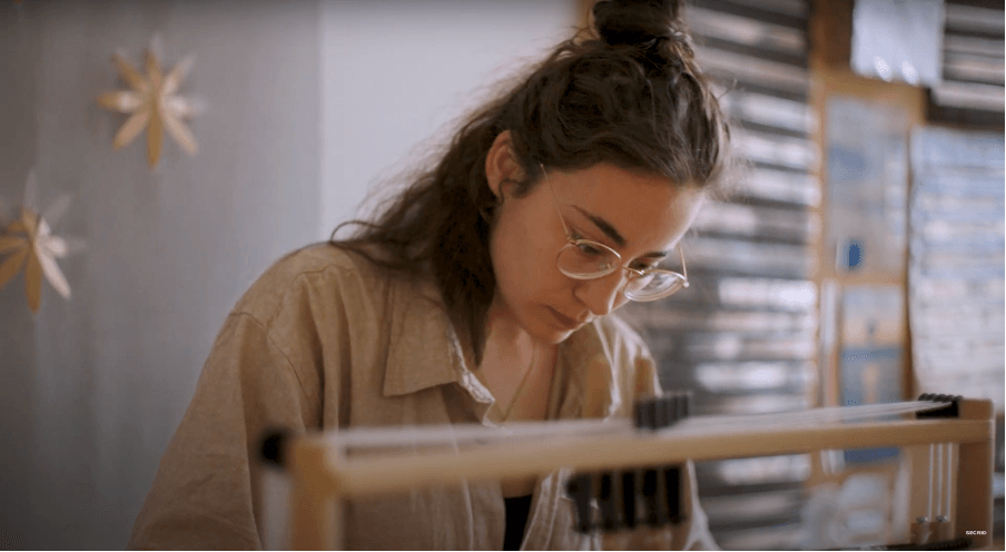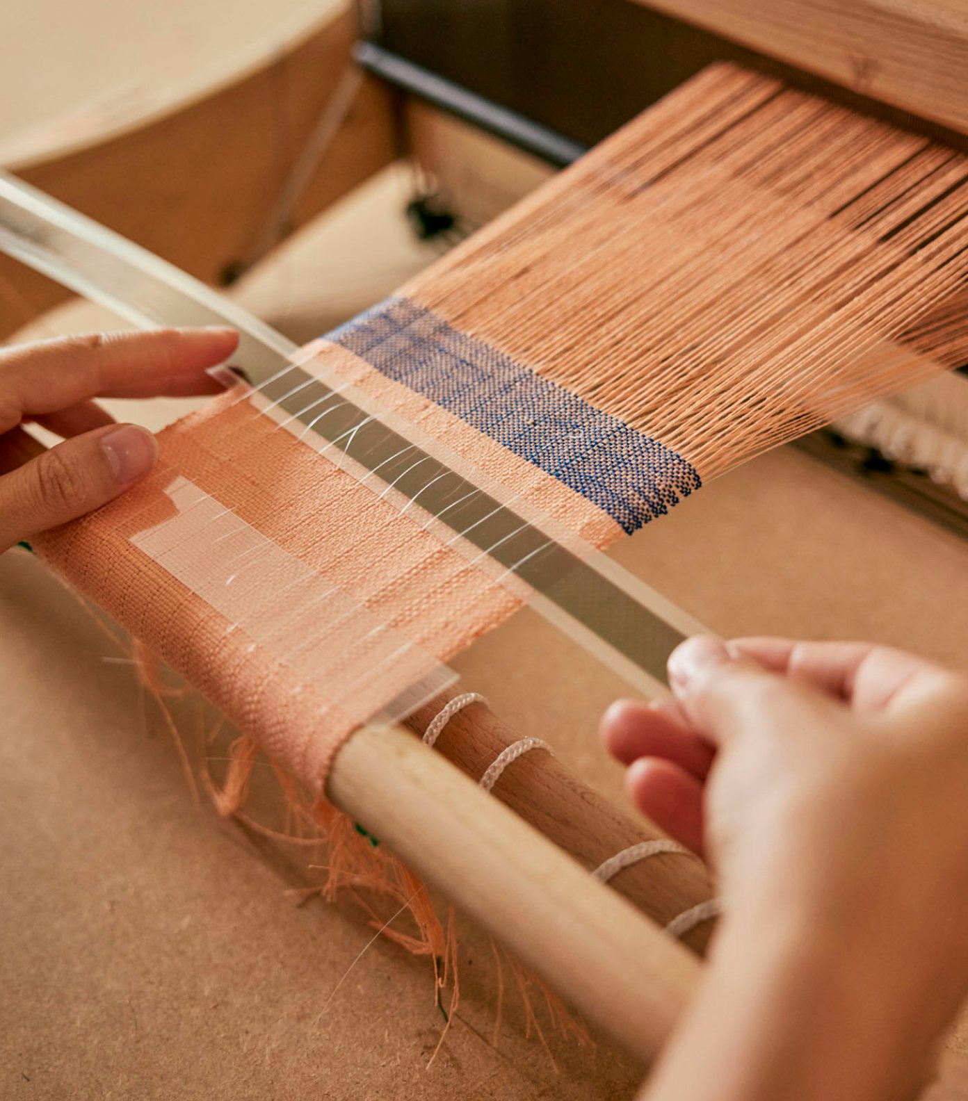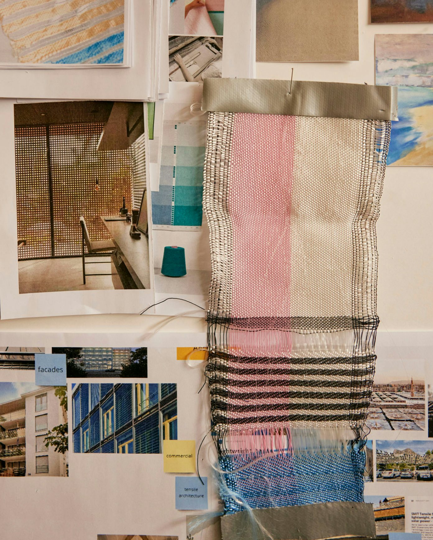 Our goal is to scale up SUNTEX for larger architectural projects like facade fabrics and festival tents. We are currently weaving SUNTEX on a loom with a width of fifty centimetres. Our next step is to transition to industrial machines with a minimum weaving width of 150 centimetres. To achieve this we will work with a number of European partners, including Danish and German ones.