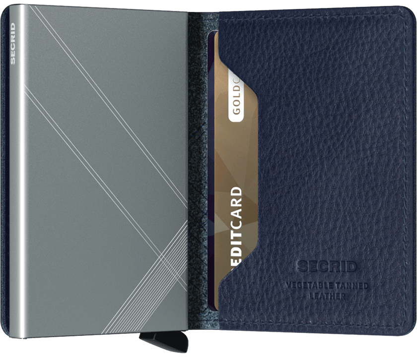 Su delgado perfil permite que la Slimwallet quepa perfectamente en cualquier bolsillo. El exterior abierto está diseñado de forma extra ancha para dar cabida a tarjetas, billetes y recibos. El mecanismo Cardprotector te permite sacar las tarjetas con un simple movimiento, mientras que la construcción de aluminio protege tus tarjetas de dobleces, roturas y comunicaciones inalámbricas no deseadas.