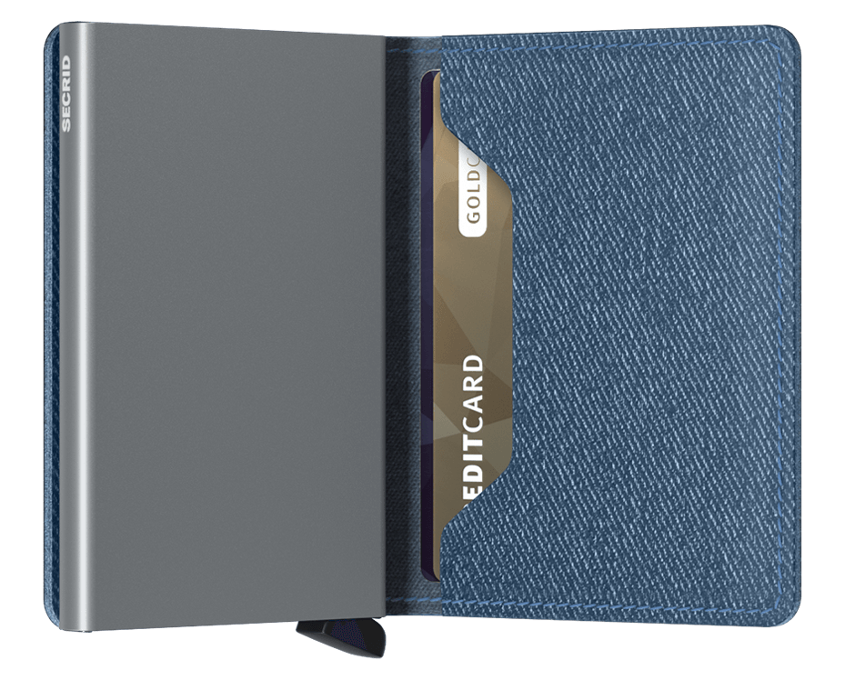 Su delgado perfil permite que la Slimwallet quepa perfectamente en cualquier bolsillo. El exterior abierto está diseñado de forma extra ancha para dar cabida a tarjetas, billetes y recibos. El mecanismo Cardprotector te permite sacar las tarjetas con un simple movimiento, mientras que la construcción de aluminio protege tus tarjetas de dobleces, roturas y comunicaciones inalámbricas no deseadas.
