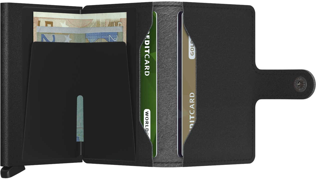 Petit par sa taille et étonnamment grand par sa capacité de stockage, le Miniwallet combine le meilleur des deux mondes. L'extérieur peut contenir des billets de banque, des reçus et des cartes, tandis que le Cardprotector en aluminium vous permet de faire sortir les cartes d'un simple mouvement et les protège contre pliures, cassures et les communications sans fil non désirées.