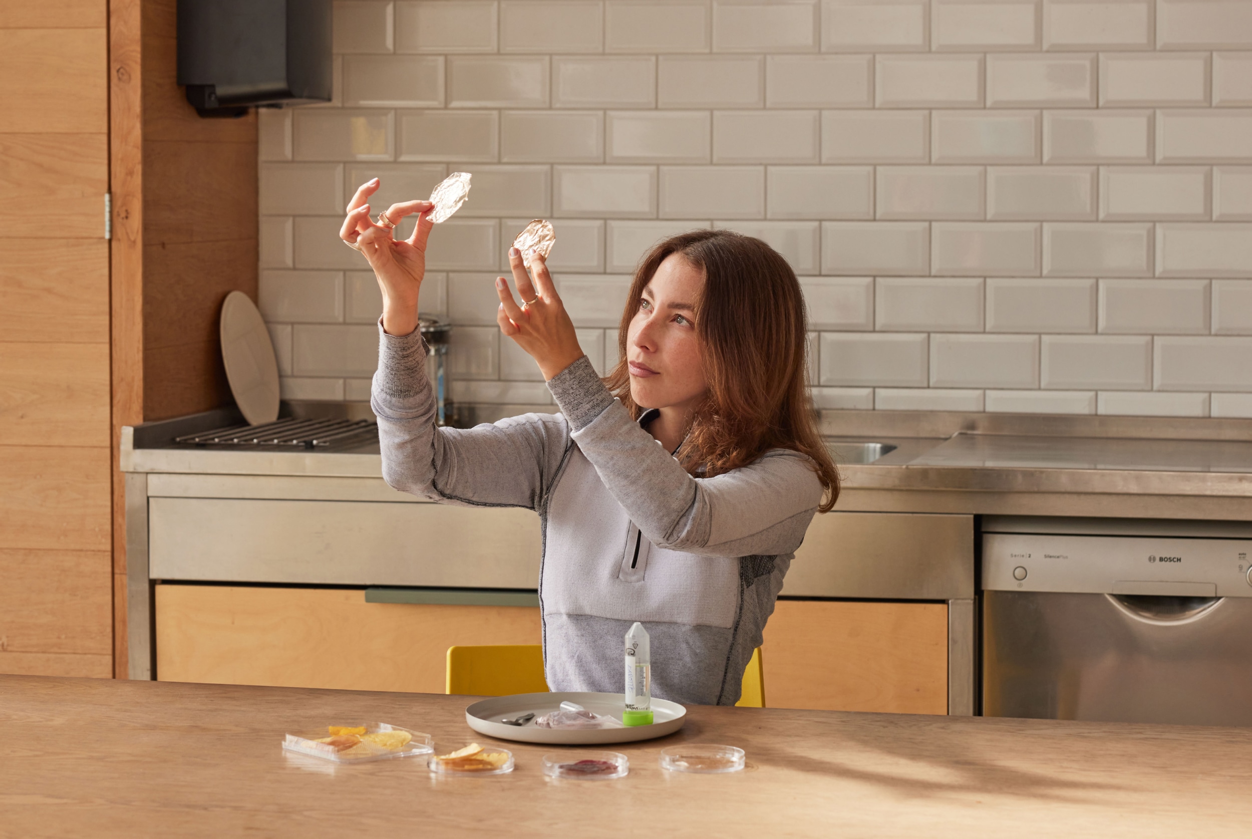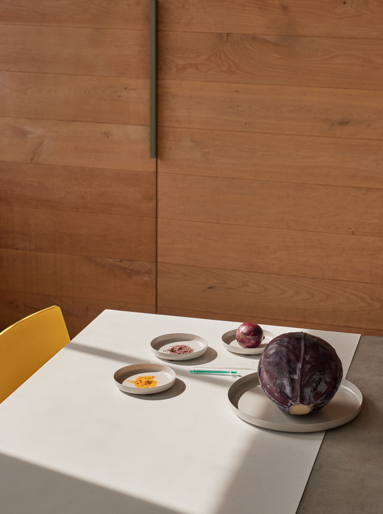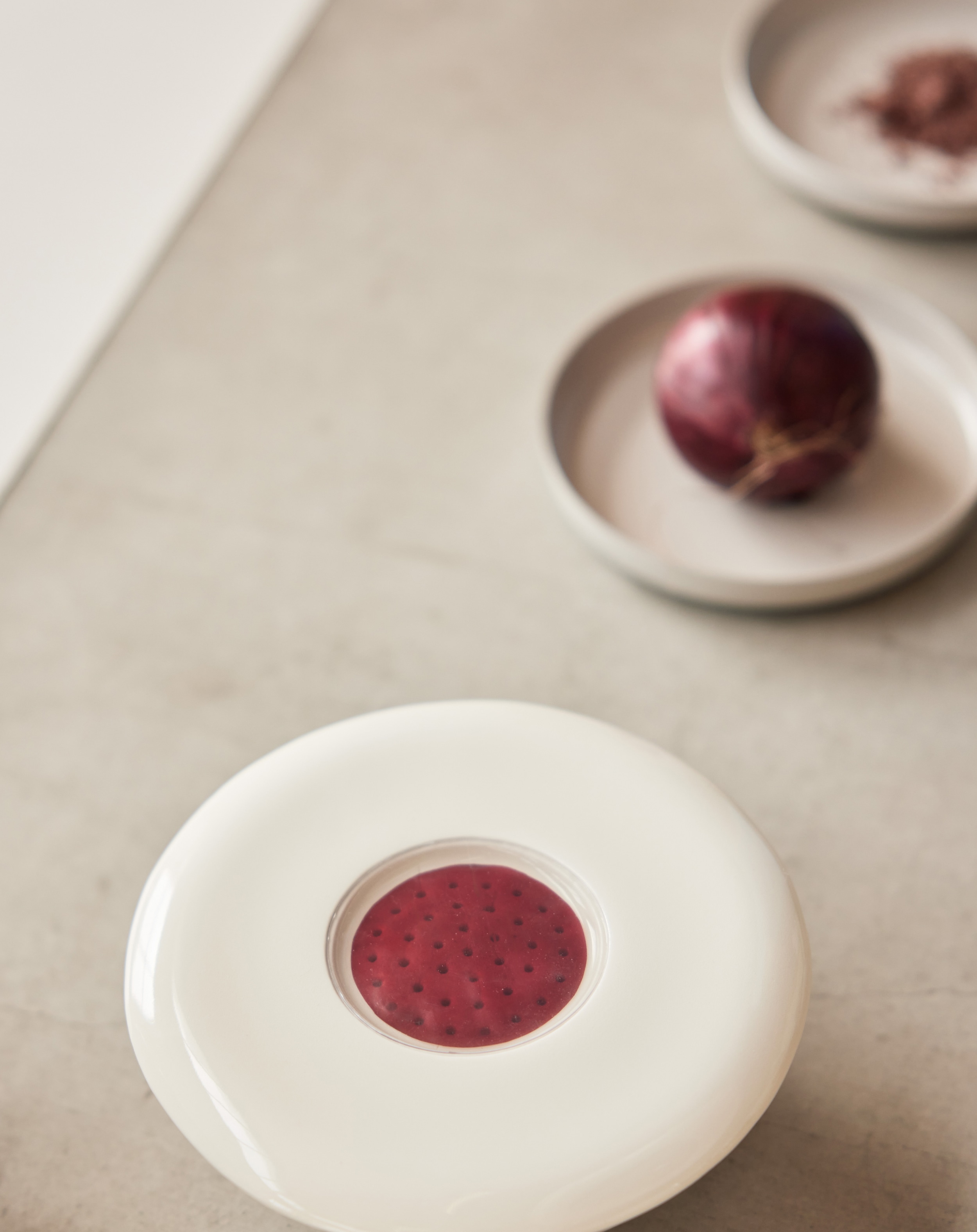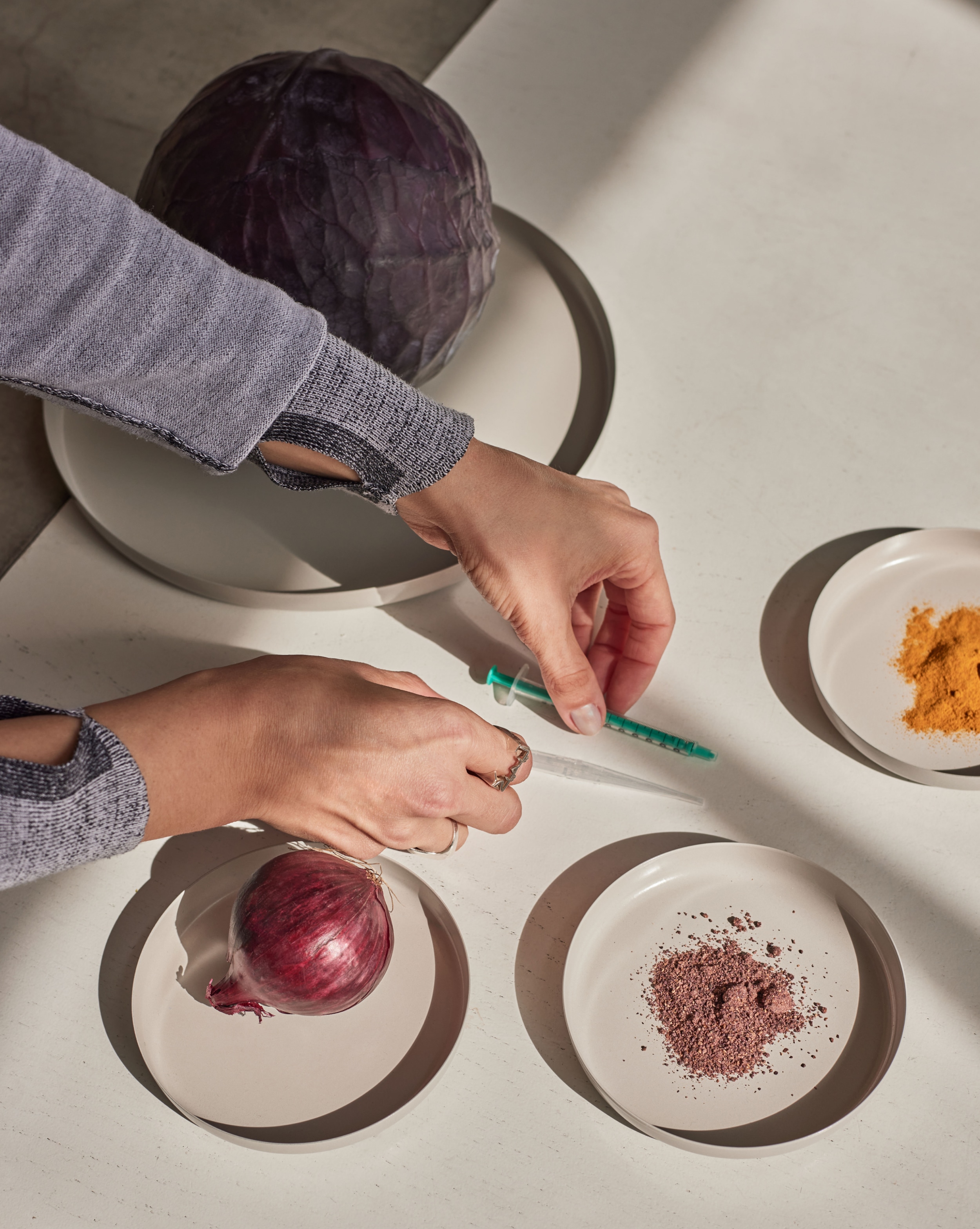 During the process of developing Vorkoster, we also looked at how we can make the technology feasible for different kinds of use. Do we really need the lid, or can we also work with just the foil? We created this idea of test stripes that you could use directly on the product. The downside here is that these stripes would not be reusable like the lid, so we started looking into using a circular algae-based material. So many dilemmas. Do we even want a throw-away product? Which solution solves the problem most effectively and creates the least harm?