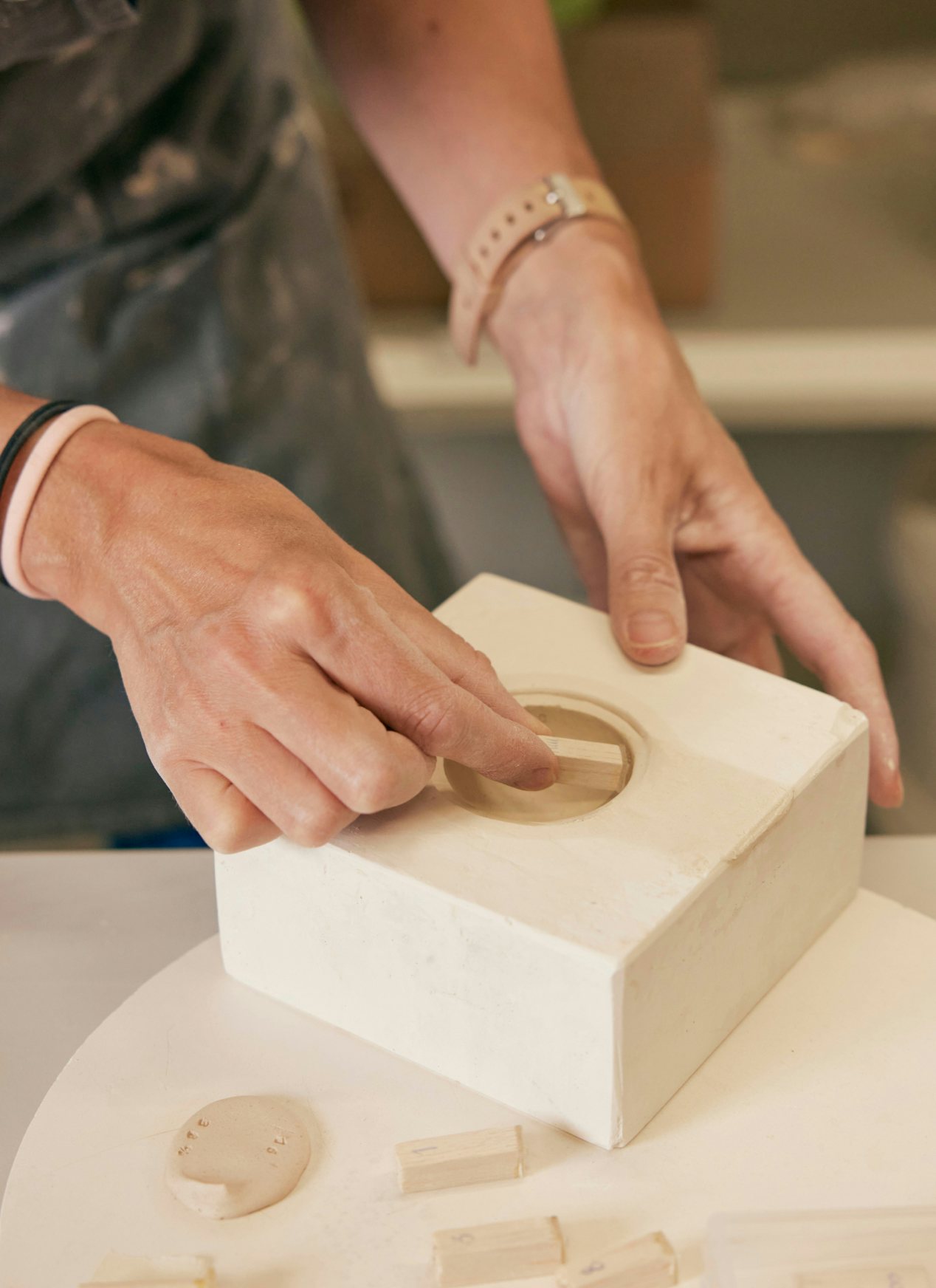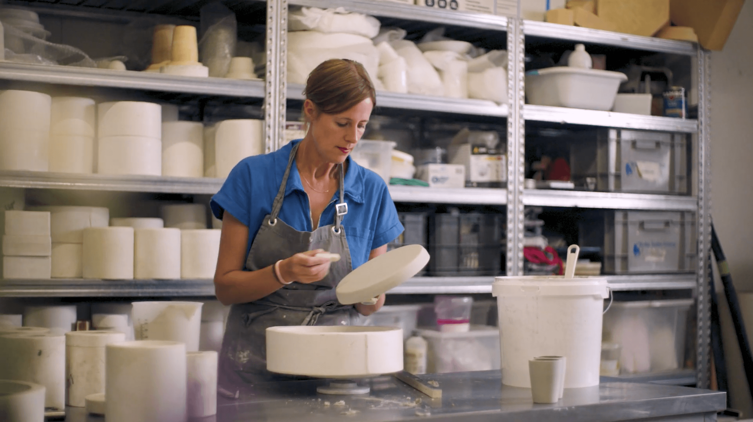 Mijn materiaalontwikkeling heeft geleid tot een kleirecept met een zeer korte standtijd. Dat zal ik even uitleggen: normaal gesproken moet aardewerk een bepaalde tijd in een mal zitten om dikte op te bouwen. Wanneer het de juiste dikte heeft, giet je de overtollige klei eruit en laat je het een tijdje staan zodat het droogt. De klei krimpt dan en daardoor komt het los van de mal. Een traditioneel aardewerkproduct moet vaak anderhalf uur in de mal staan. Mijn klei daarentegen heeft maar een paar minuten nodig.
